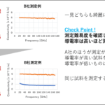 ただし、測定例をそのまま鵜呑みにしてはいけません。測定が比較的容易な試料だけを示して「こんなにきれいに測れます」と見せている例は要注意です。特に、導入後測定予定の素材に近いサンプルを測ったときのデータがどうなるのか、周波数帯を変えたときに相関が正しく得られるのか――そうした情報まで確認することで、実際の現場で役に立つかどうかを判断することができます。